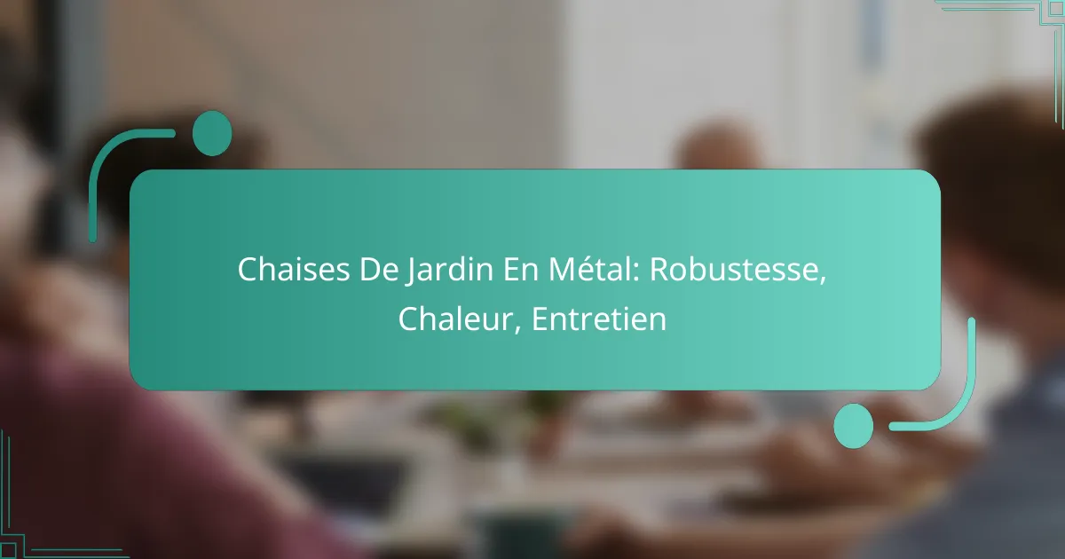Les chaises de jardin en métal allient robustesse et esthétisme, offrant une solution durable pour embellir votre espace extérieur. Résistantes aux intempéries, elles nécessitent un entretien régulier pour préserver leur éclat et leur longévité. Opter pour des marques réputées garantit un confort optimal et une qualité supérieure.