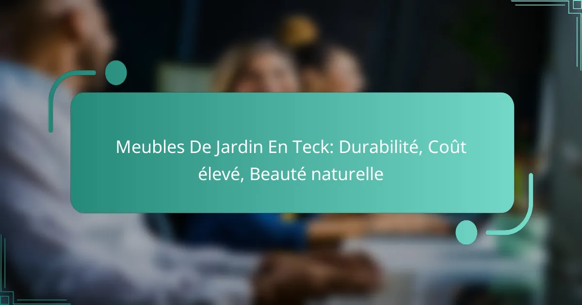 Les meubles de jardin en teck sont une option prisée pour ceux qui recherchent à la fois durabilité et esthétique. Bien qu’ils présentent un coût élevé, leur résistance aux intempéries et leur beauté naturelle en font un investissement judicieux pour les espaces extérieurs. Un entretien régulier permet de préserver leur éclat et d’assurer leur longévité.
