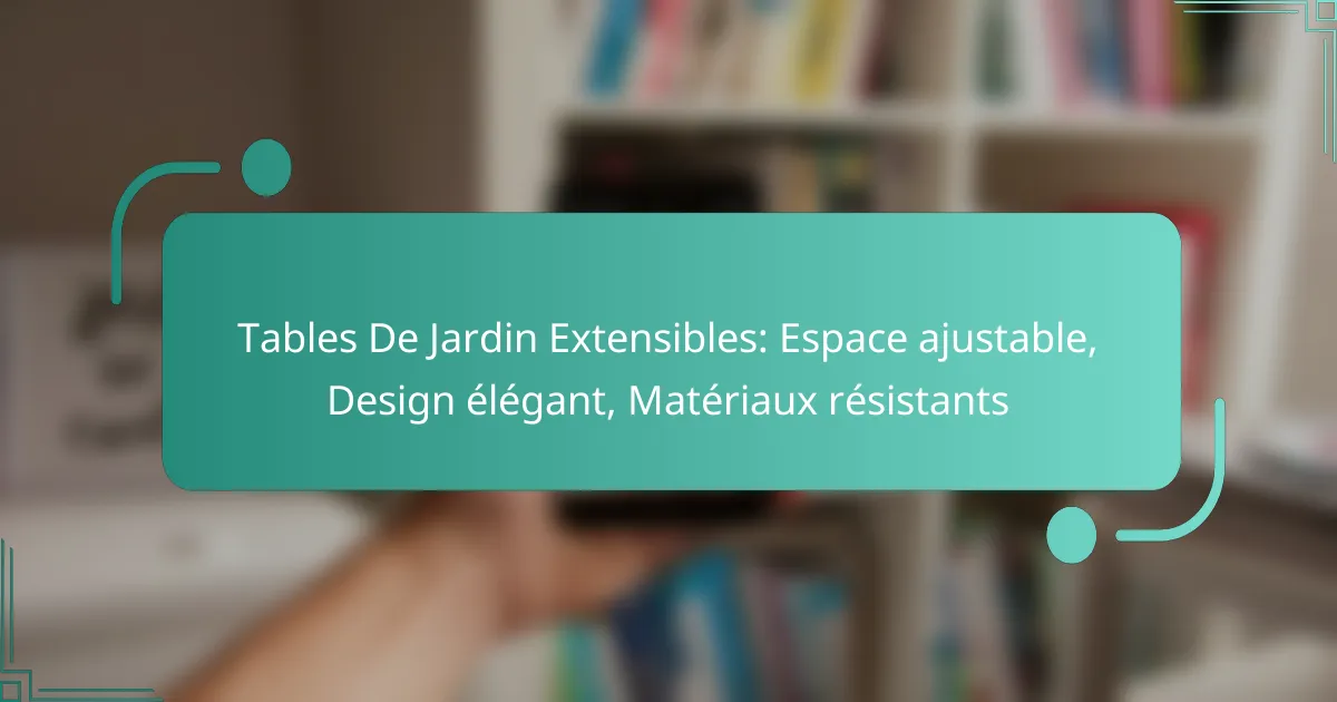 Les tables de jardin extensibles sont idéales pour optimiser votre espace extérieur tout en ajoutant une touche d’élégance. Fabriquées à partir de matériaux résistants tels que le bois, le métal ou le plastique, elles s’adaptent facilement à vos besoins, que ce soit pour un repas intime ou une grande réunion. Choisir la bonne table permet de créer un environnement accueillant et fonctionnel dans votre jardin.